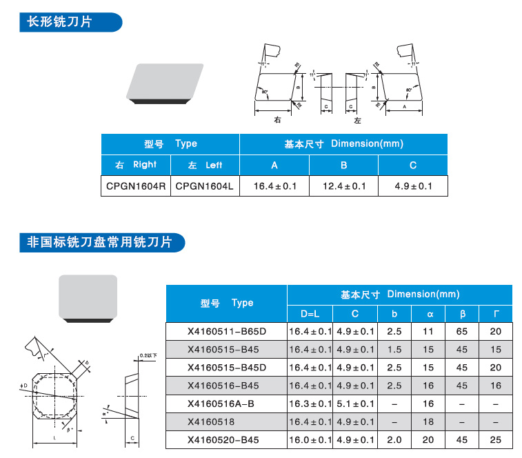 四邊形硬質(zhì)合金機夾銑銷刀片